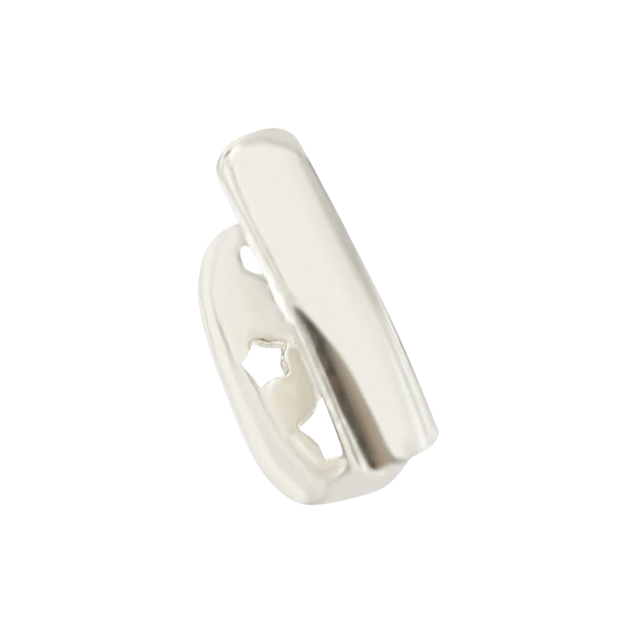 Rock a classic street style with this silver star cut-out single tooth grillz. Crafted from high-shine sterling silver with a sleek star-shaped cutout design. Fits comfortably over one tooth and adds instant edge to your look. Perfect for making a bold statement at parties or music events.